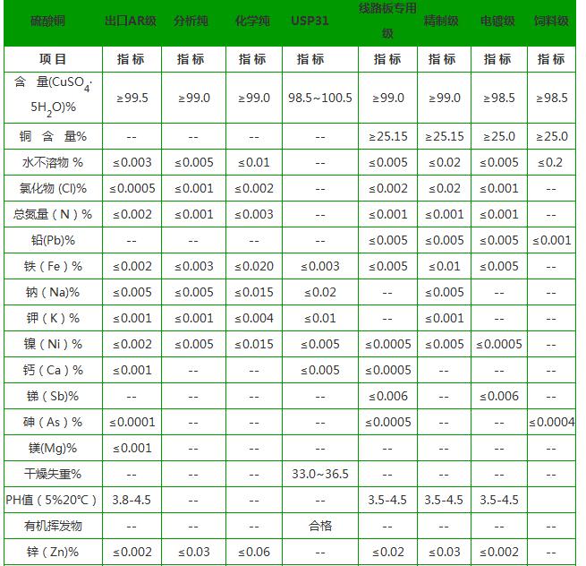 產品用途:用于微量元素添加劑,農業消毒殺菌劑.選礦藥劑,電鍍黃銅和化學鍍銅,紡織品媒染劑